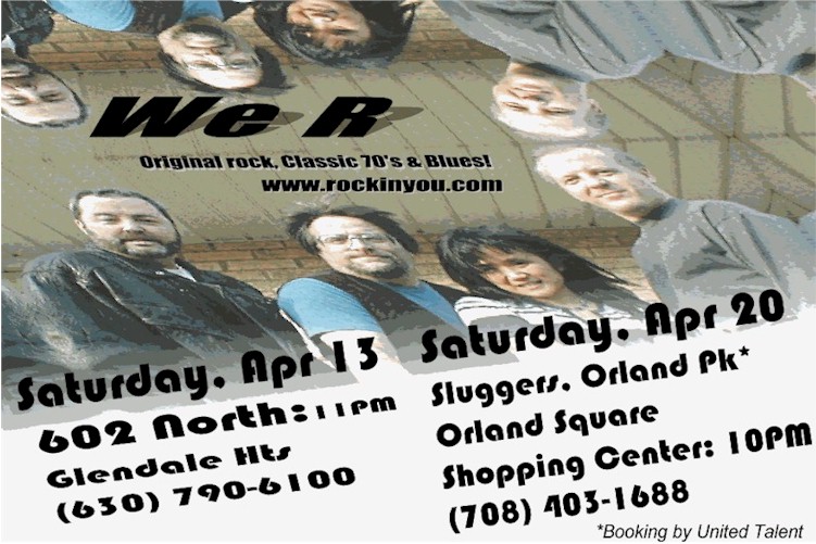 Thanks to all who made it out to our shows at Bungalow Joe's and Penny Road Pub in March. Catch us for an evening of WE R at the two shows below. Hope to see you there!